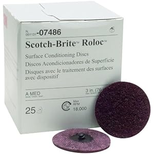 3M Scotch-Brite Roloc Maroon Surface Conditioning Disc is designed to quickly remove cut cork or gasket materials prior to the assembling of power train components. It is ideal for cleaning light oxidation and can be used on a wide variety of surfaces including engine blocks, heads, valve covers as well as transmission housing. Read more Cheap 3M 07486 Scotch Brite Surface Conditioning